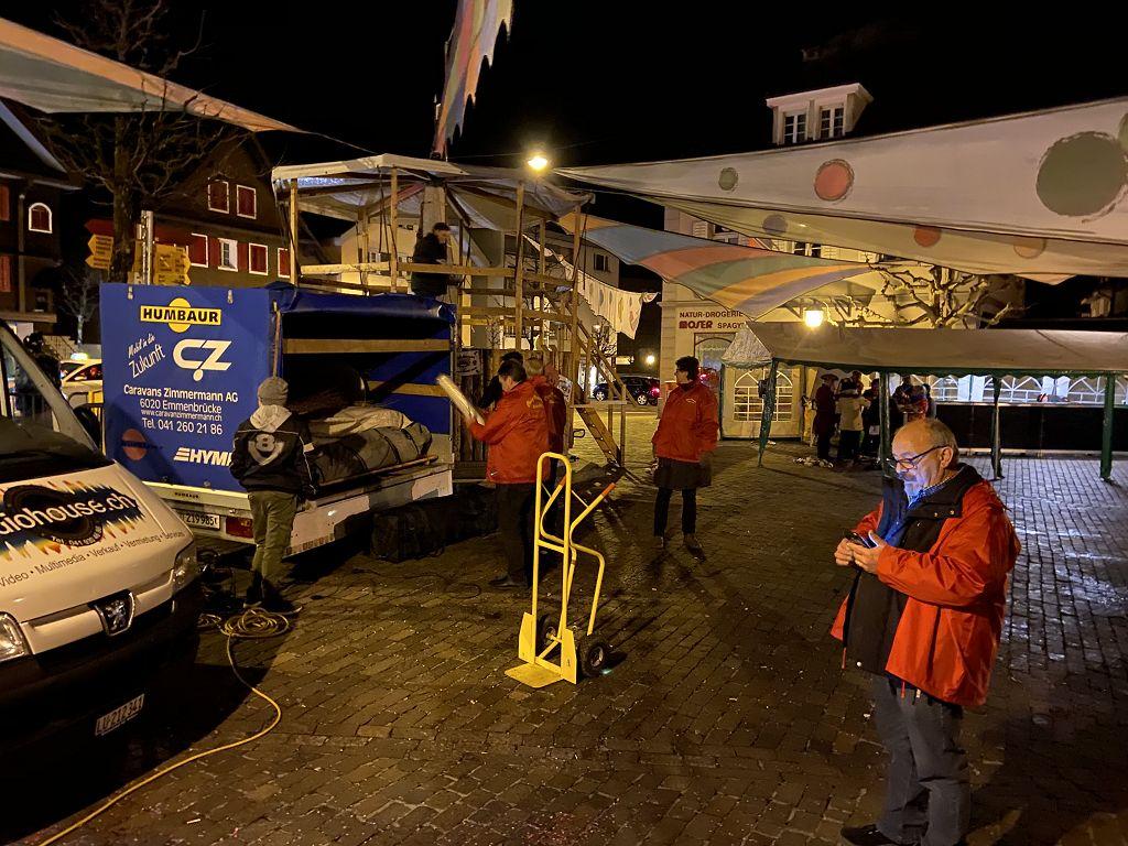 Auch am Schmudo, dem 20.02.2020 durften wir unsere Einsatzkräfte erneut unter Beweis stellen. Am Monschter, organisiert von der jubilierenden Guuggemusig Borggeischter (happy b-day Borgis), durften wir wiederum die zahlreich angereisten Fasnächtler mit Speis und Trank verwöhnen. Der Fleckenplatz war zum Bersten voll, die Stimmung ausgelassen, Jung und Alt in bester Partylaune. Diverse GuuggerInnen animierten mit ihrem Sound zum Mitschaukeln, Tanzen, Singen und Lachen. Ungefähr um 20.15 Uhr hingen plötzlich mehrere Angehörige der Feuerwehr gleichzeitig an ihren Handys und horchten angespannt. Kein gutes Ohmen. Brandalarm! Unzählige verliessen fluchtartig die Guuggerbühnen oder den Kafistand und sputeten in Windeseile zum Brandplatz. Alle Achtung! Chapeau! Ganz nach dem Motto : «Gott zur Ehr- dem Nächsten zur Wehr» ……